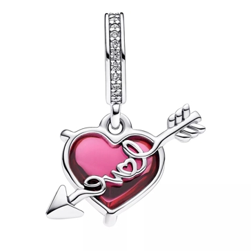Pandora Heart and arrow sterling silver dangle with clear Red Pendant Very well made.