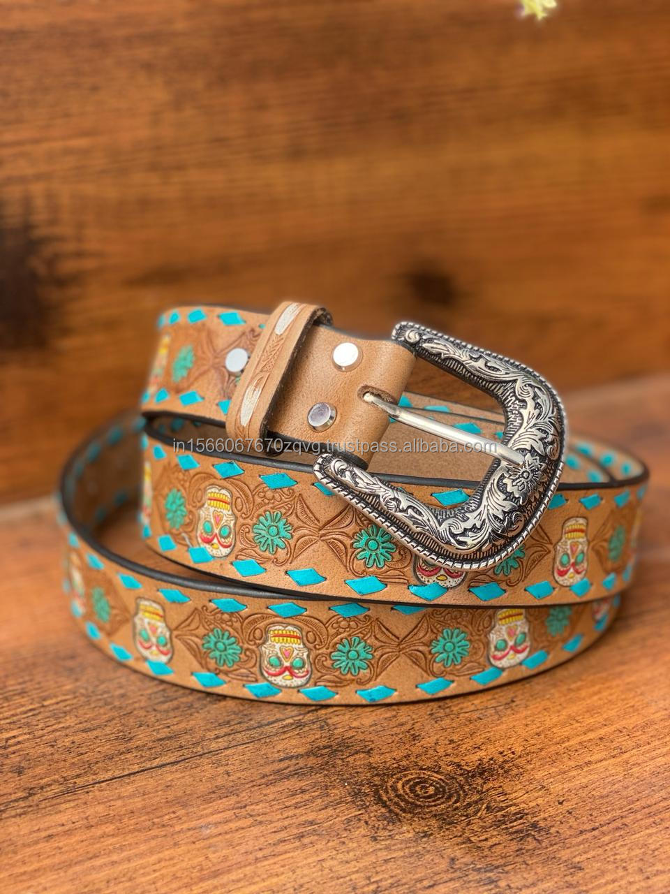New Handmade Stylish Turquoise Hand Tooled Leather Western Belts Personalized Genuine Leather Floral Design Unisex Waist Belts Very well made.