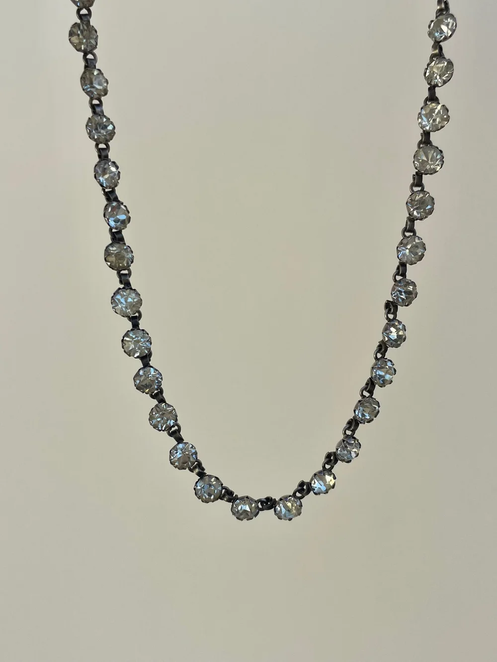 Antique Silver Closed Back Paste Riviere Choker Necklace Gembank1973 Very well made.