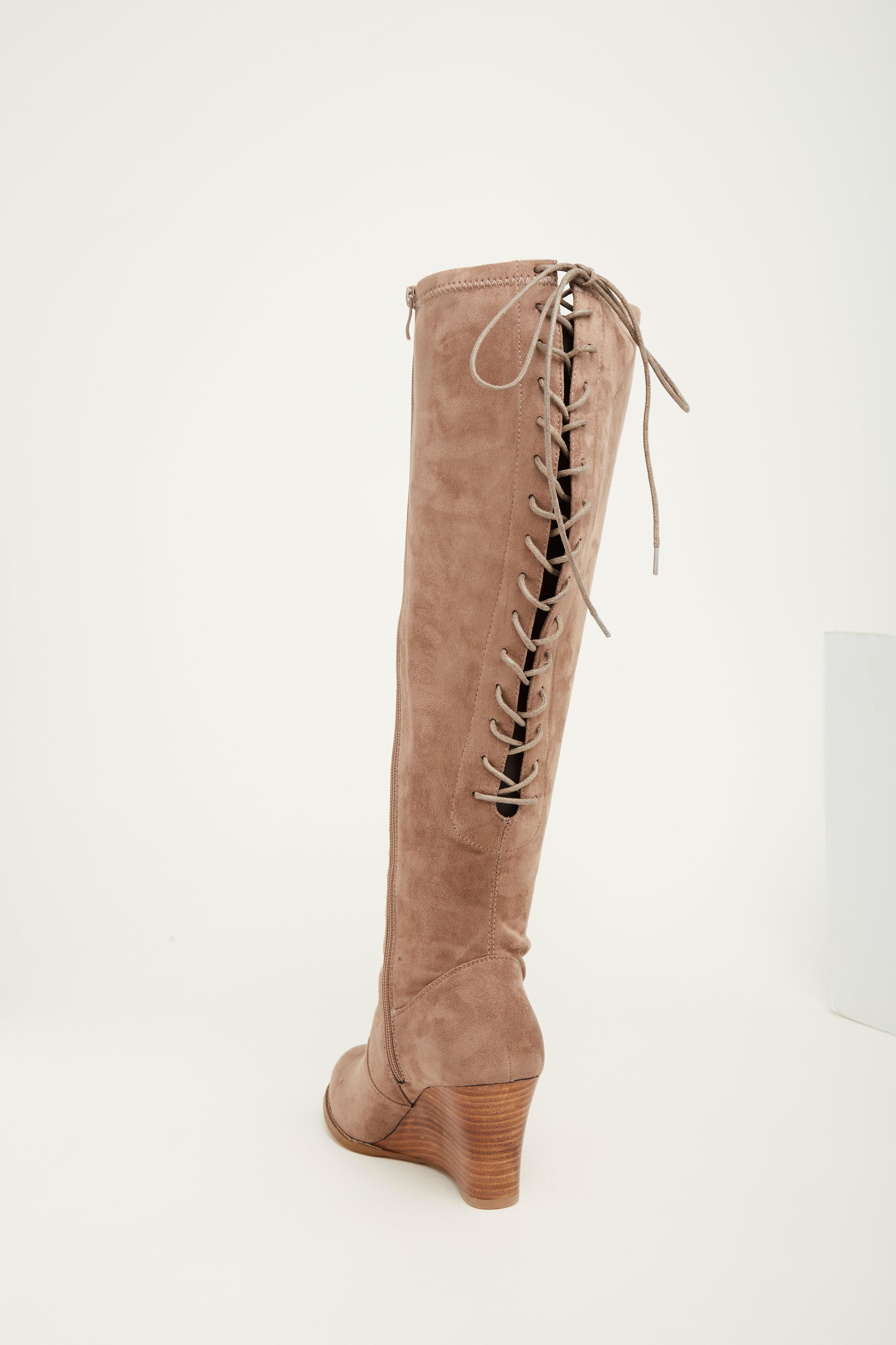 Plus Size Faux Suede Lace Up Back Wedge Boots Wide Width Wide Calf Torrid Very well made.