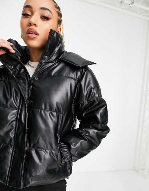 Sixth June oversized cropped puffer jacket with hood in faux leather Very well made.