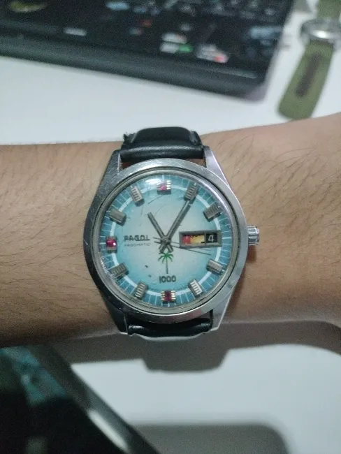 vintage Pagol 1000 Swiss watch GOLD bezel tropical dial recently serviced WatchCharts Marketplace Very well made.