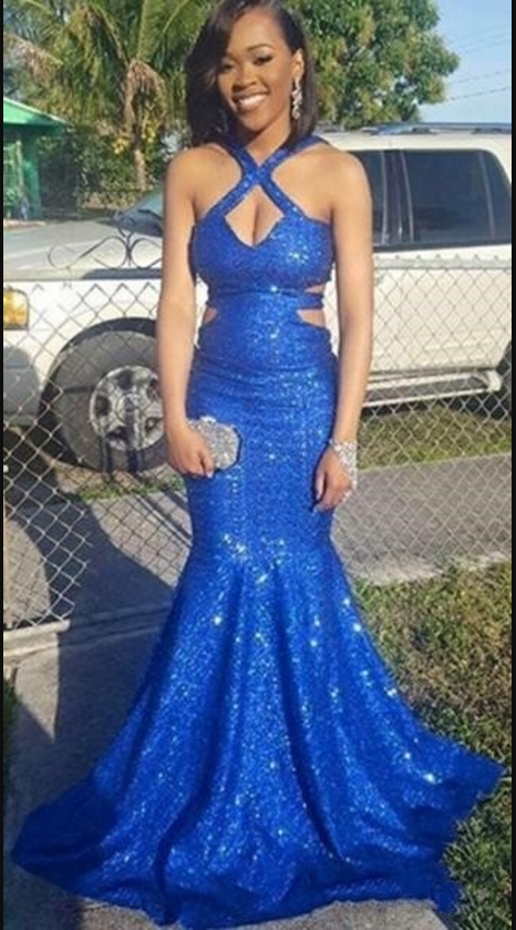Royal Blue Sequined Sexy Prom Dresses 2018 Long Cutaway Sides Mermaid Evening Dress Sexy Back Shinni on Luulla Very well made.
