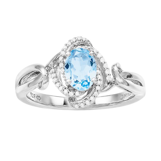 Women s 7mm x 5mm Oval Genuine Aquamarine Ring with 1 10 CTW White Diamond Sterling Silver Ring Size 9 Very well made.