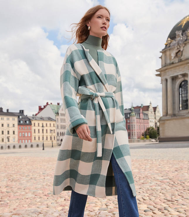 Fall in Napa Valley Flattering Plaid Wrap Coat Extra Petite Very well made.
