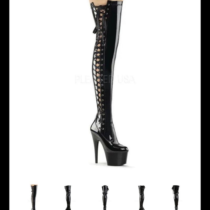 Pleaser Adore 3050 Womens 7 Heel Platform Side Lace Stretch Fit Thigh Length Boots From Alternative Footwear Very well made.