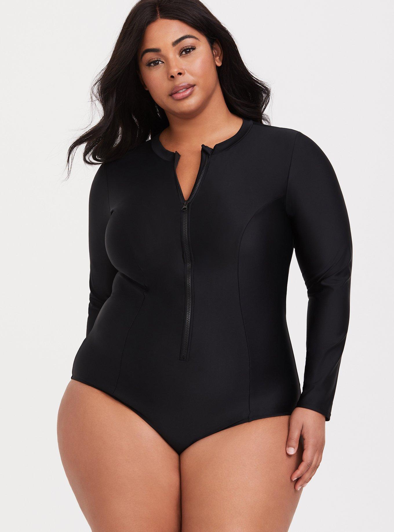 Unique Vintage Plus Size Black Mesh Sleeved Torrey Swimsuit Very well made.