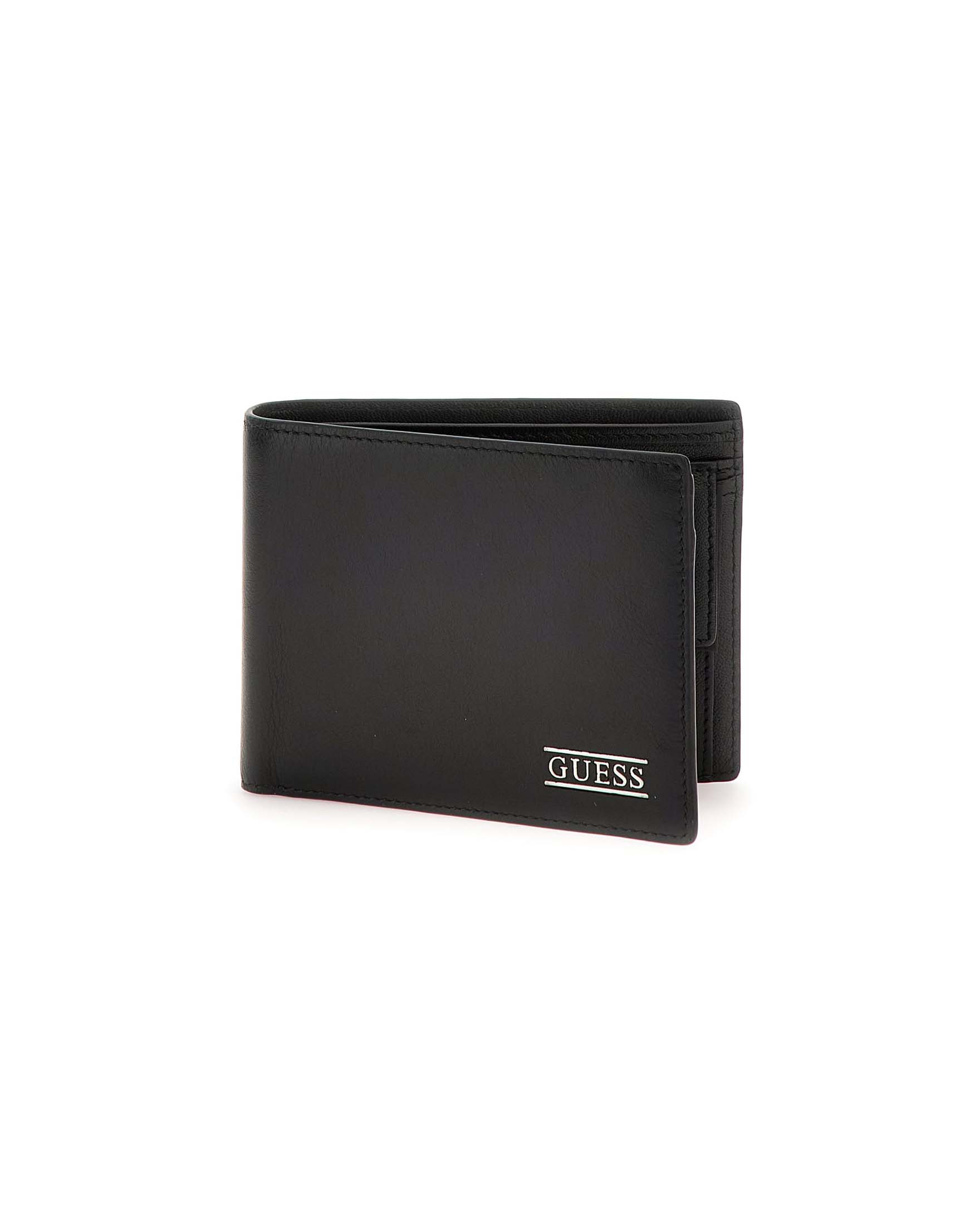 Portafoglio nero in pelle martellata con logo sul davanti e tasca portamonete Very well made.