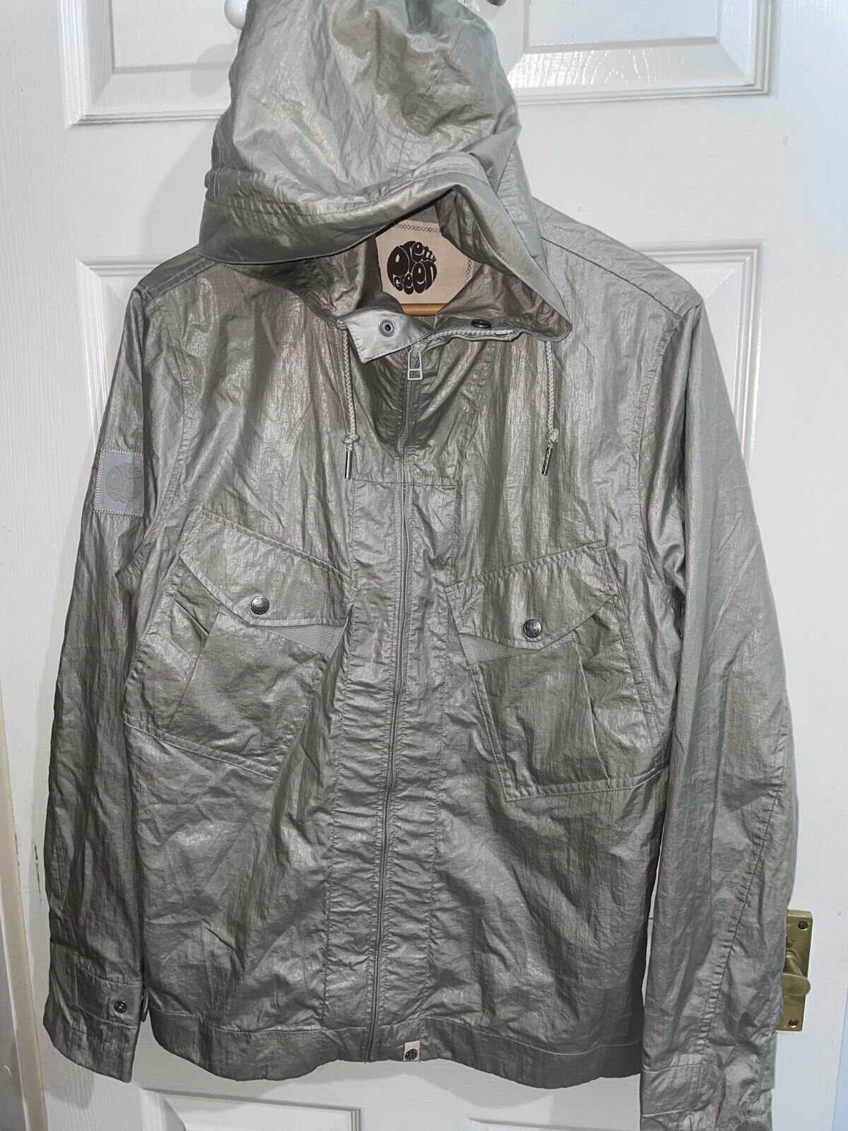Pretty Green silver jacket Medium Excellent Very well made.