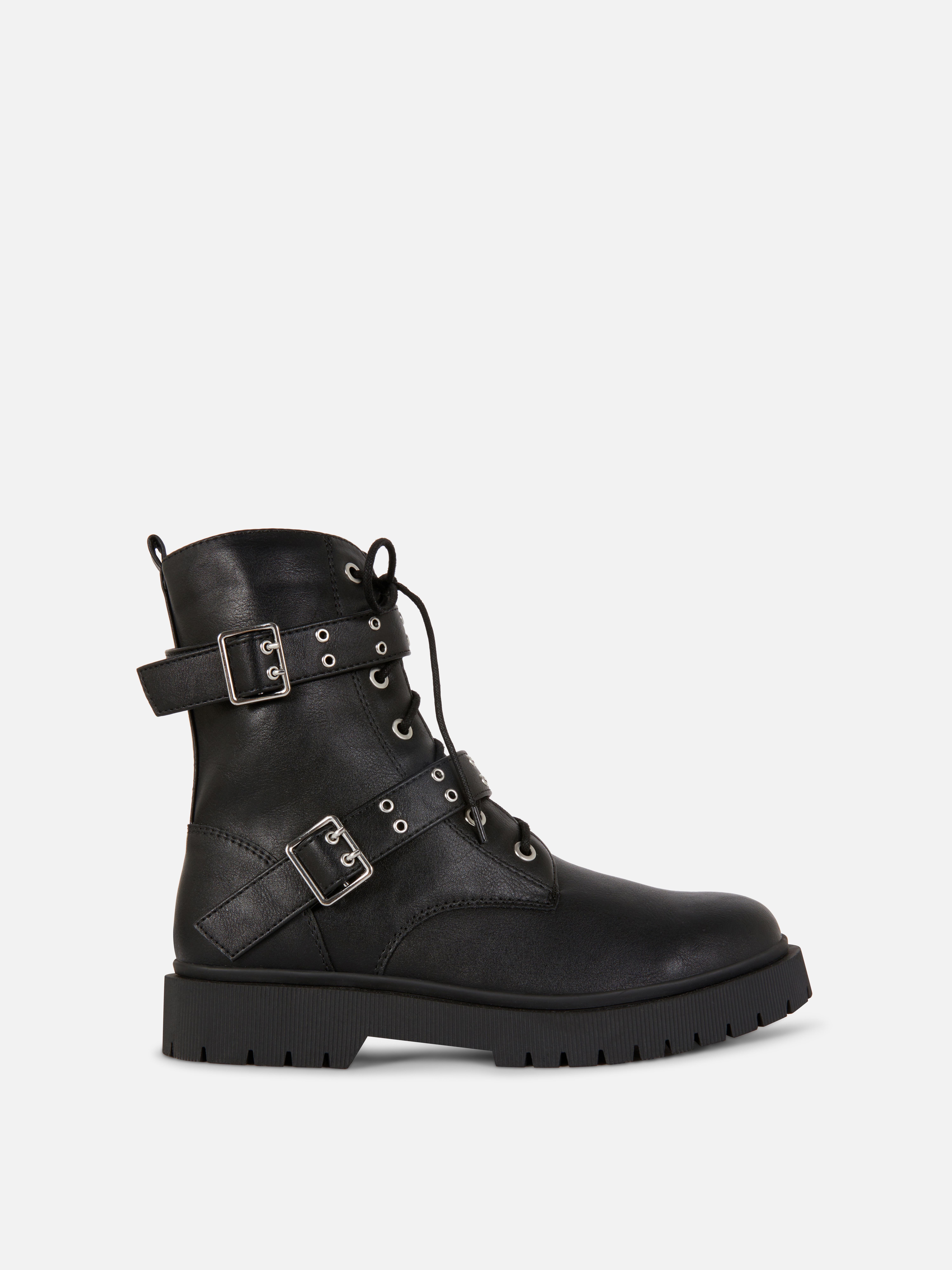 Girls Black Buckled Biker Boots Primark Very well made.