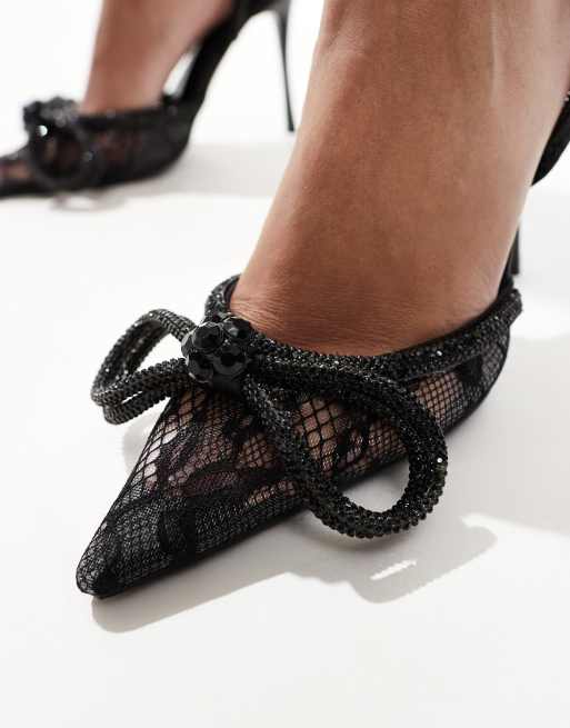 Public Desire Midnight Lace embellished bow heeled shoes in black ASOS Very well made.