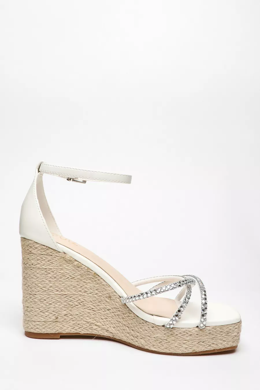 Bridal White Cross strap Pearl Wedges Very well made.