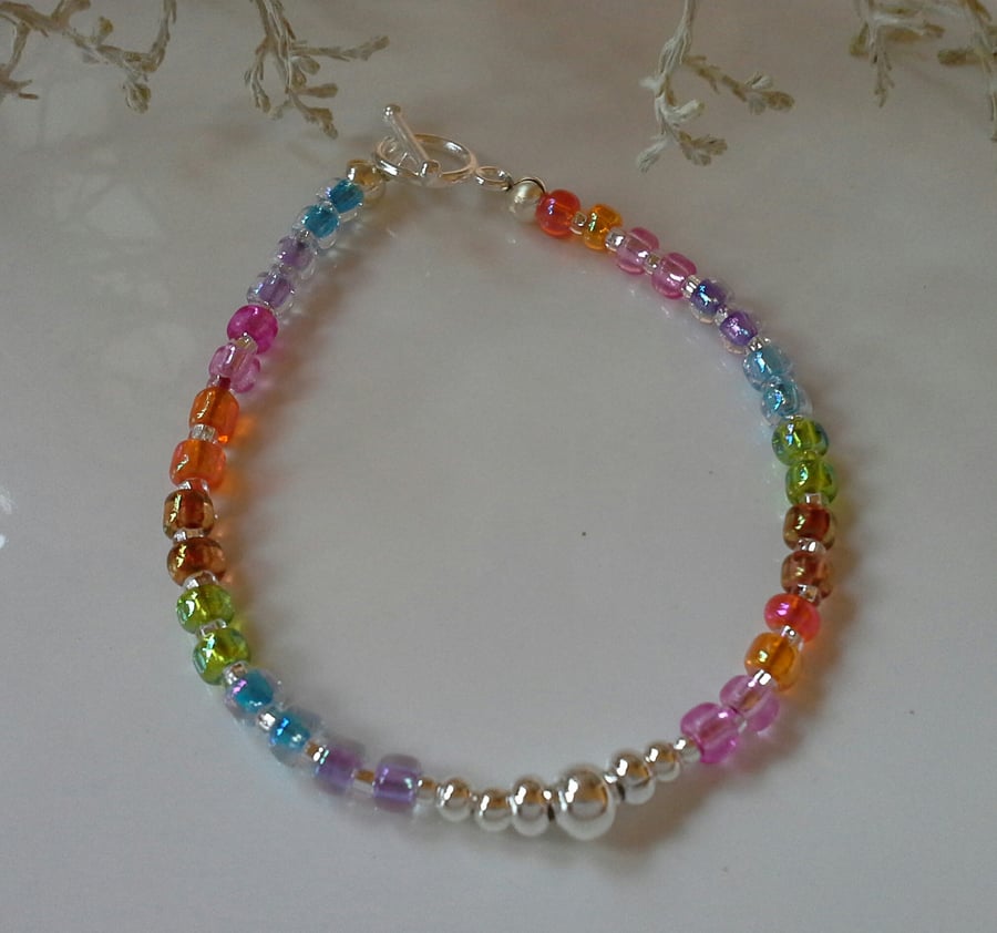Rainbow Dainty Skinny Bracelet Silver Plated 16. Folksy Very well made.