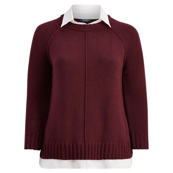 New Ralph Lauren Layered Shirt Sweater Gray White Collar Women Size Large Long Very well made.