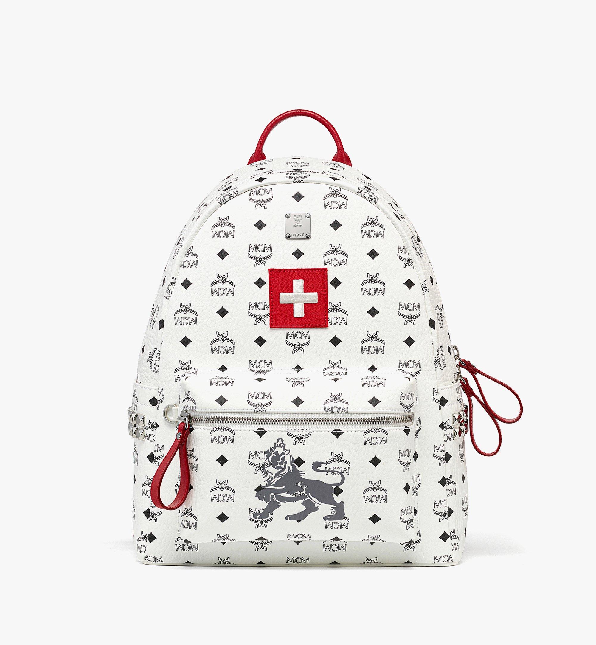 MCM Visetos Medium Stark Backpack Red White 1025044 FASHIONPHILE Very well made.