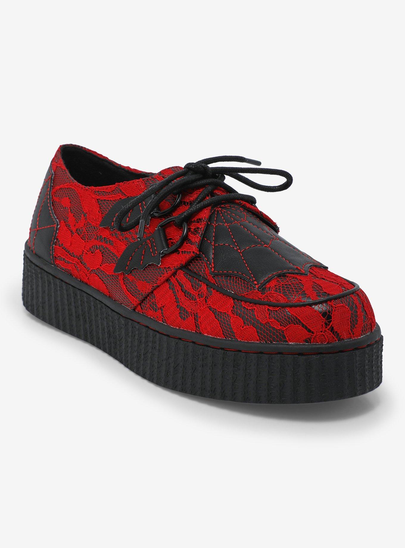 Strange Cvlt Web Red Black Lace Krypt Creepers Hot Topic Very well made.