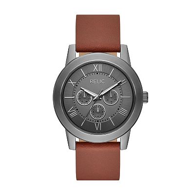 Relic by Fossil Men s Isaac Gunmetal Brown Leather Multifunction Watch Very well made.
