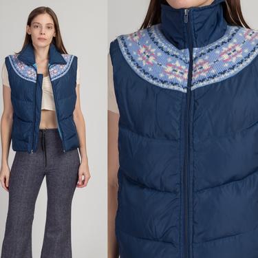 70s Blue Fair Isle Puffer Vest Medium Vintage Down Flying Apple Vintage Los Angeles CA Very well made.