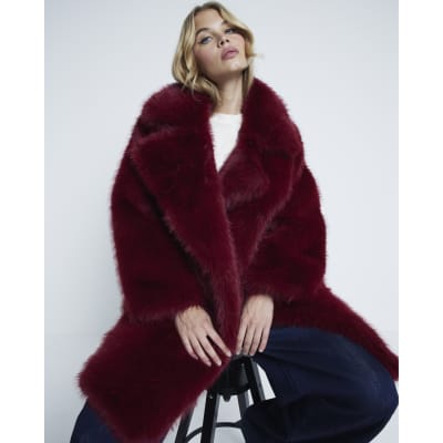Red Faux Fur Mid Length Coat River Island Very well made.