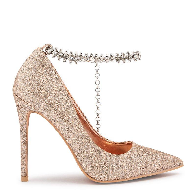 Buy Now Women Rose Gold Embellished Party Stiletto Heels With Ankle Loop Very well made.