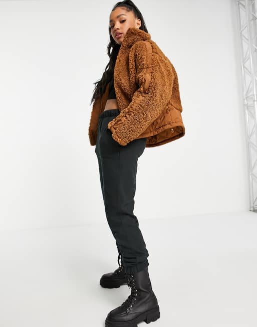 Pimkie borg jacket with contrast panel detail in rust brown Very well made.