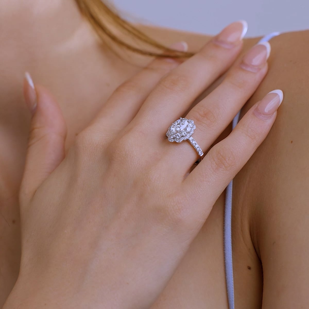 2 ctw Oval Lab Grown Diamond Double Scalloped Halo Engagement Ring Grownbrilliance Very well made.