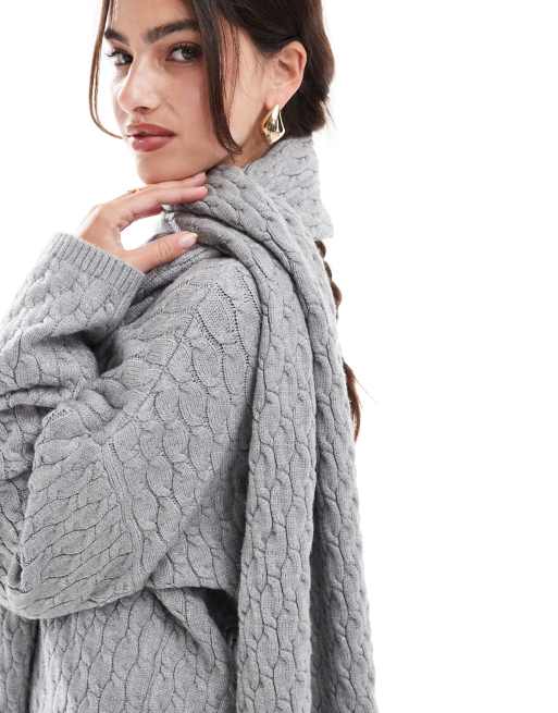 4th Reckless cable knit sweater with scarf in gray part of a set Very well made.