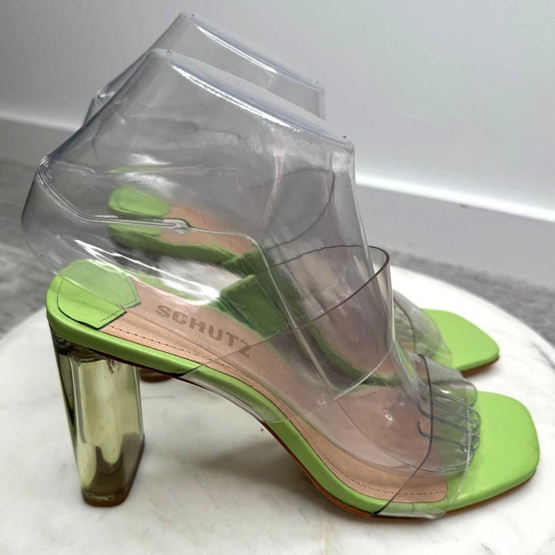 Schutz NEW Schutz Ariella Leather Acrylic Heel Sandal Neon Green Grailed Very well made.