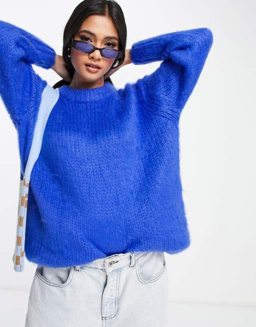 ASOS DESIGN chunky oversized sweater in cobalt Very well made.