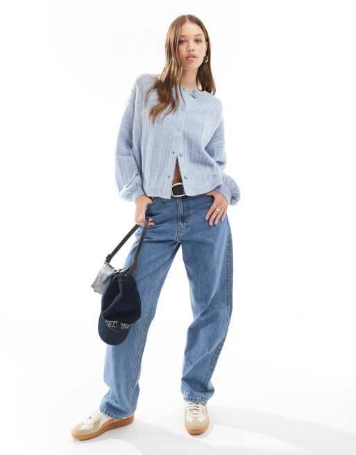 ASOS DESIGN fluffy oversized knitted cardigan in light blue Very well made.
