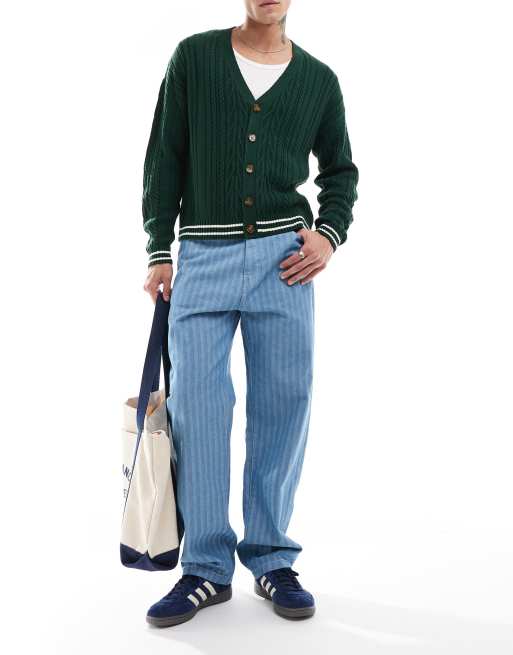 ASOS DESIGN relaxed boxy cable knit cardigan in dark green with cream tipping ASOS Very well made.