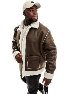 Asos Design Oversized Faux Shearling Lined Aviator Jacket In Brown ModeSens Very well made.