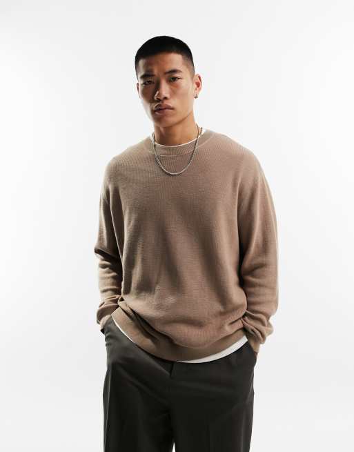 ASOS DESIGN Leichter gerippter Oversize Pullover in Taupe Very well made.