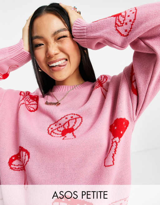 ASOS DESIGN Petite oversized jumper with mushroom pattern Very well made.