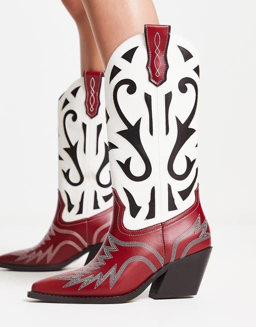 ASOS DESIGN Cupid contrast western knee boots in black and red mix ASOS Very well made.