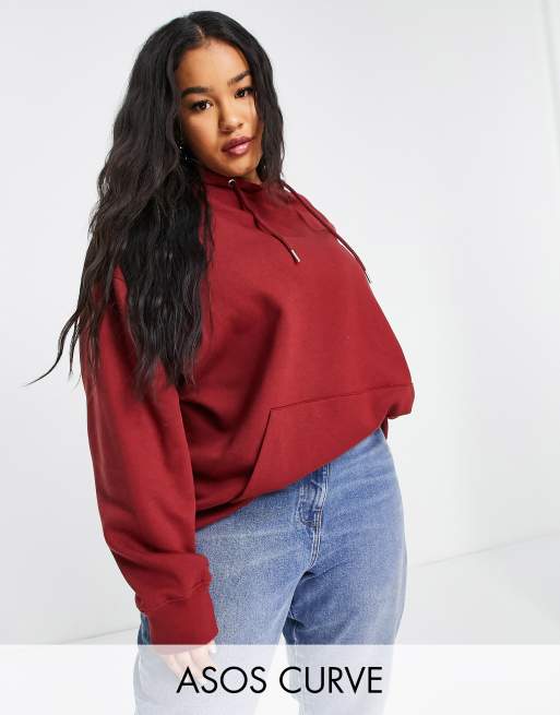 ASOS DESIGN Curve oversized boyfriend hoodie in burgundy Very well made.
