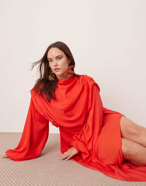ASOS EDITION Curve volume blouson sleeve satin midi dress in red Very well made.