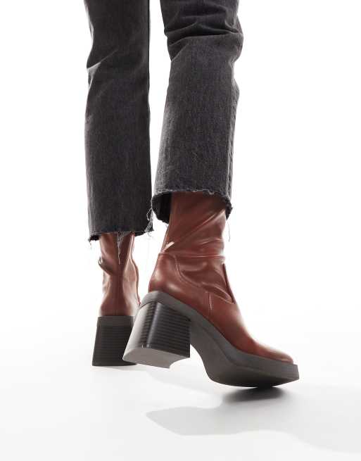 ASOS DESIGN Rome square toe mid heel platform boots in tan Very well made.