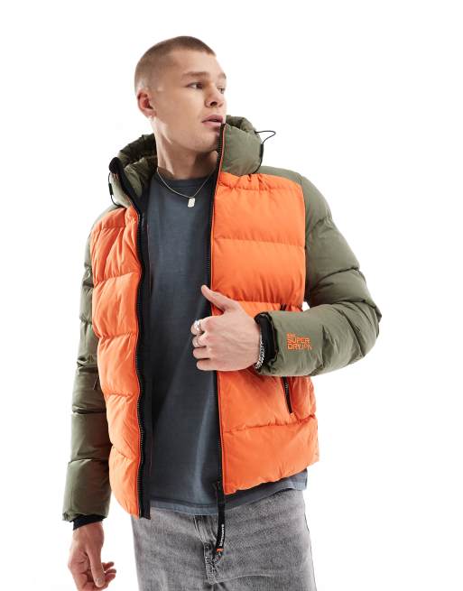 Superdry Hood colour block sport puffer in khaki colourblock Very well made.