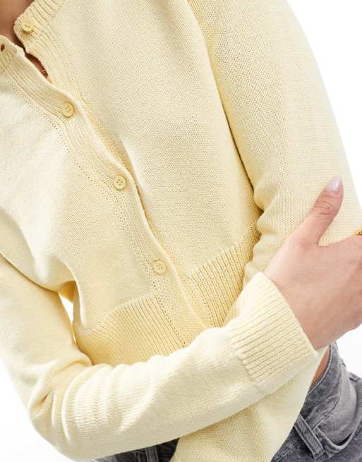 ASOS DESIGN knitted open cardigan with pattern boucle texture in yellow Very well made.