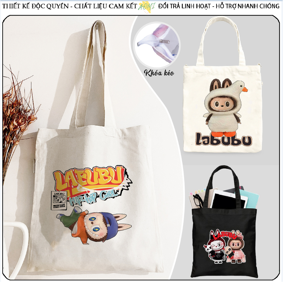 Tote labubu small monster lisa CANVAS Shoulder BAG With Zipper Large SIZE 33x38cm AOMIVN AOMIVN Street Travel Very well made.