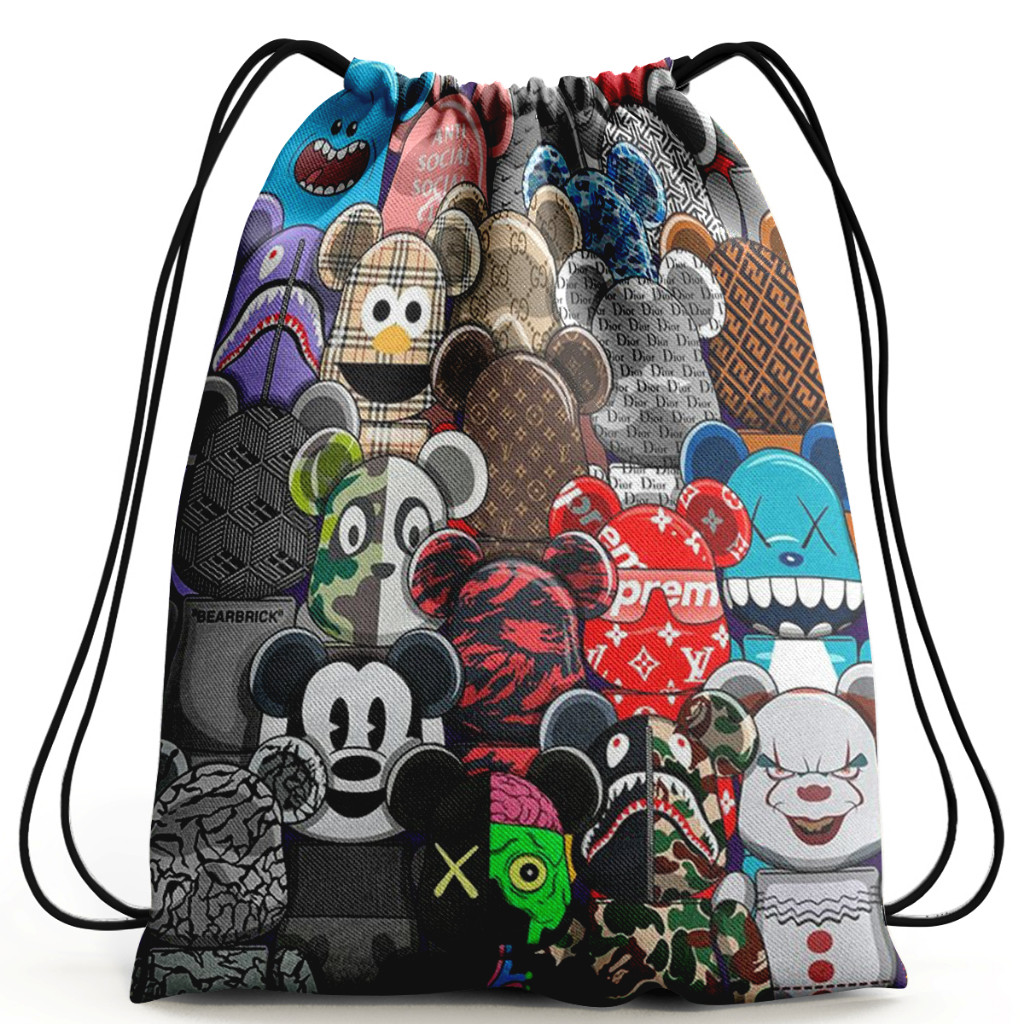 Drawstring Bag Cute String Bag Men Women Sports School Custom Full Printing Bear Brick Talucing ID Shopee Malaysia Very well made.