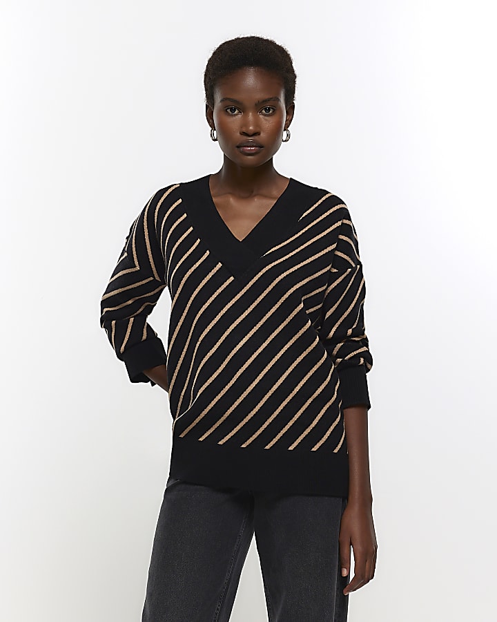 Black stripe v neck jumper River Island Very well made.