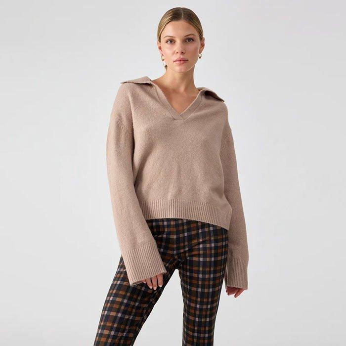 Sanctuary Women s Johnny Collared Sweater Natural Size Large Very well made.