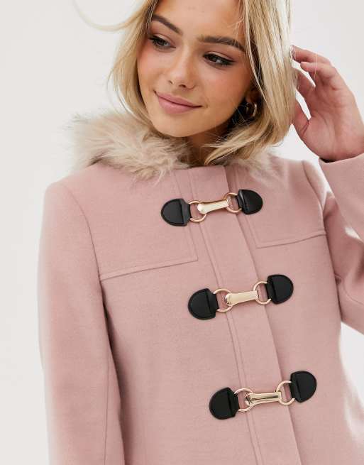 ASOS DESIGN duffle with swing skirt and metal work coat in pink Very well made.