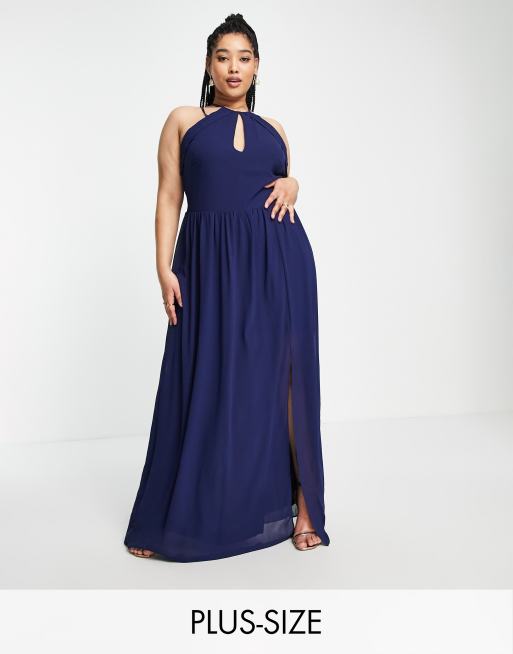 TFNC Plus Bridesmaid strappy back halter neck dress in navy Very well made.