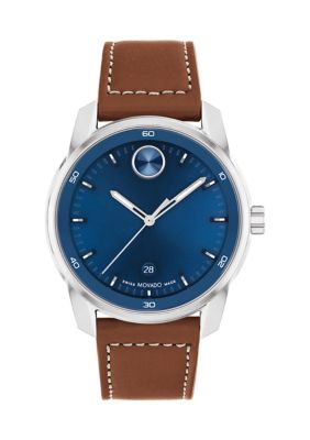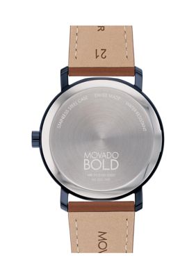 Movado Bold Thin Blue Toned Brown Strap Watch belk Very well made.