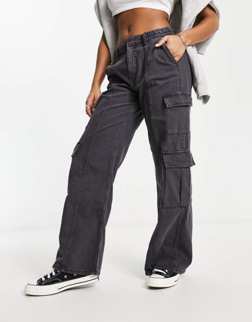 Bershka contrast stitch cargo jeans in charcoal grey Very well made.