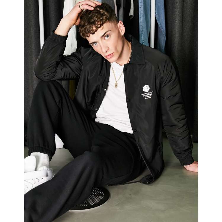 Bershka coach jacket with back print in black ASOS Very well made.