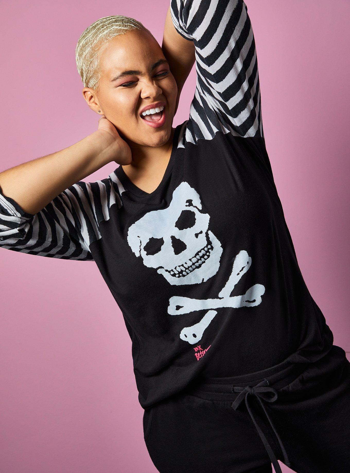 Plus Size Betsey Johnson Skull Classic Fit Tee Triblend Jersey Black White Stripe Torrid Very well made.